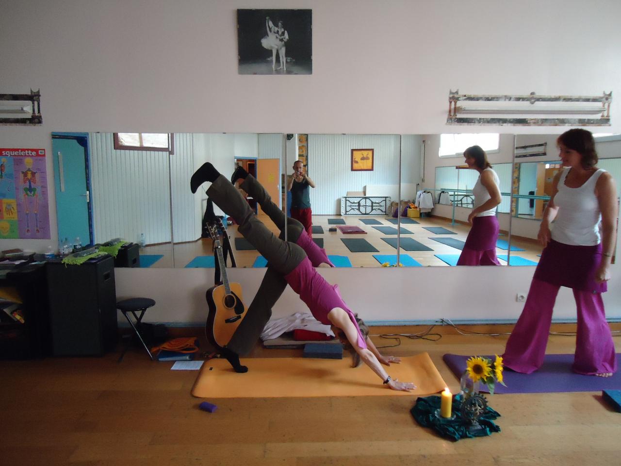 Belle posture en chien qui s'étire avec un pied à la lune!
